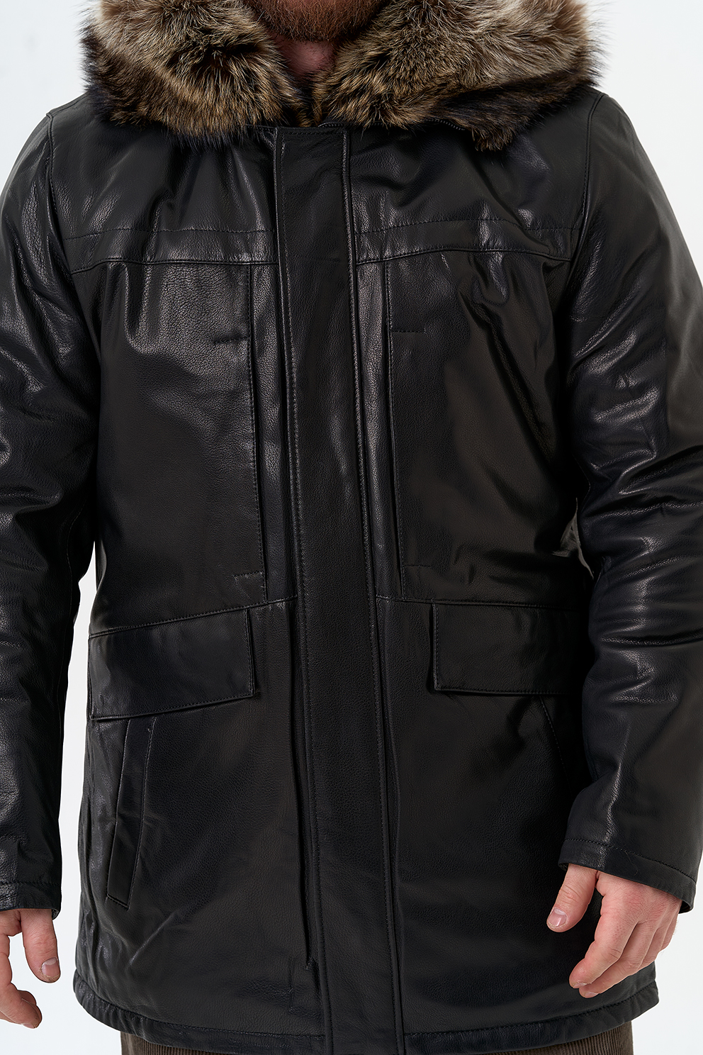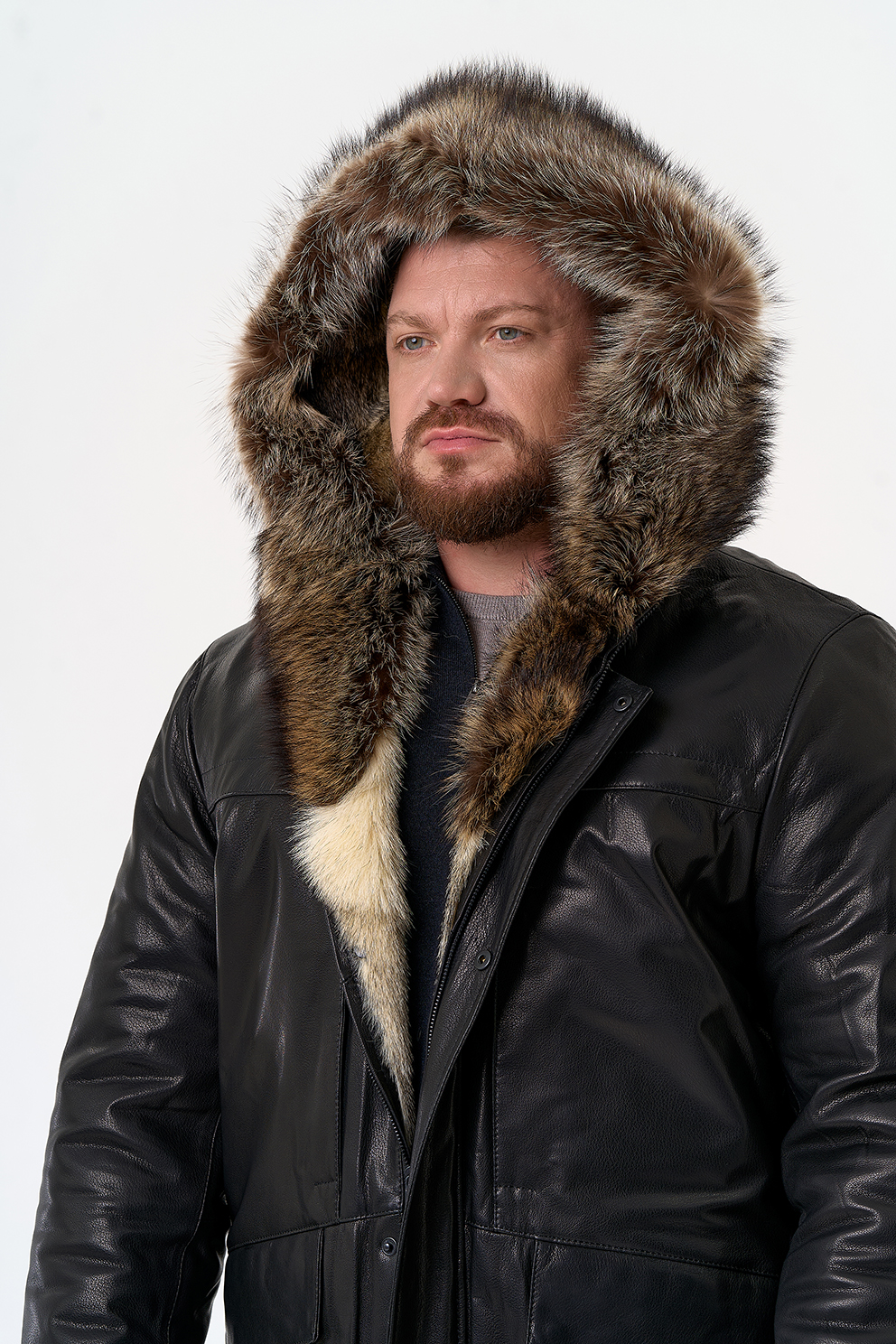 Тип ворота - капюшон, отделка мех енота