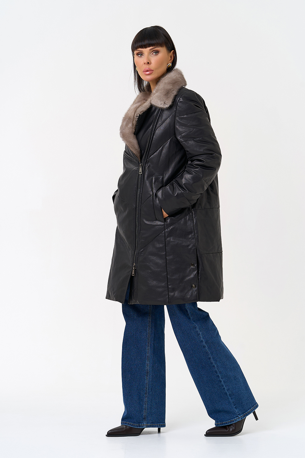 Отделка воротника - норка, цвет серый