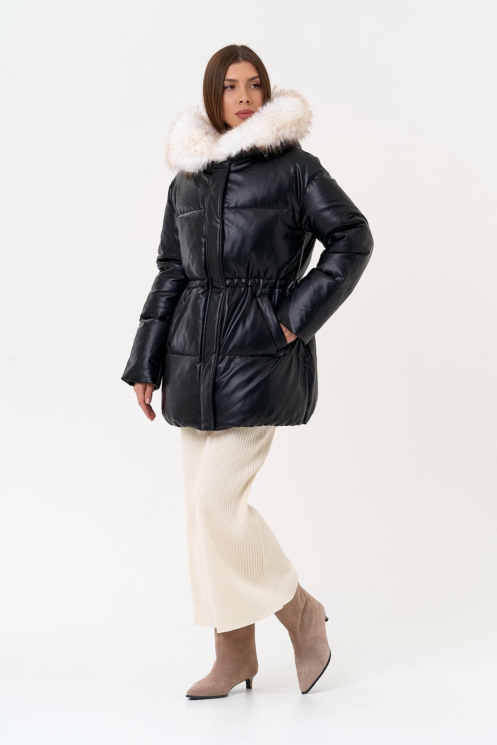 Отделка воротника - эко мех, цвет белый