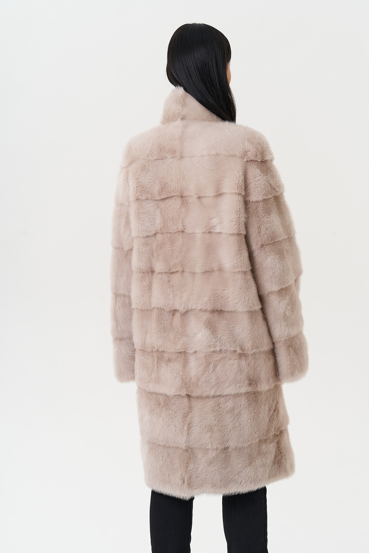 Роскошная шуба из норки в поперечном раскладе